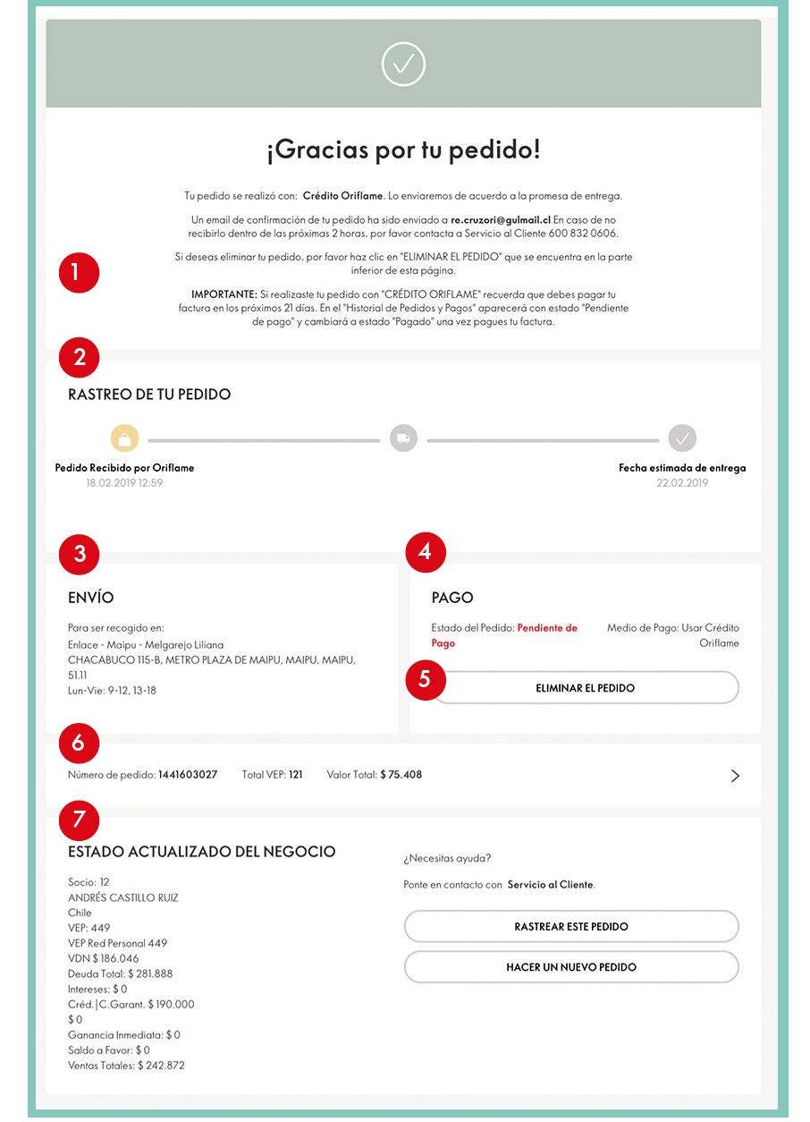 IMPORTANTE: Si eliminas el pedido, debes esperar 10 minutos para poder hacer uno nuevo.