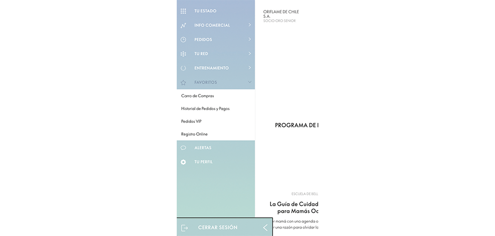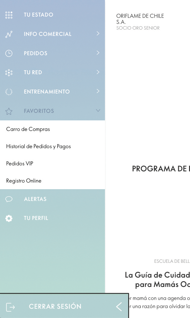 Una vez ingreses como Socio, este será el menú que encontrarás en la parte izquierda de la página.
