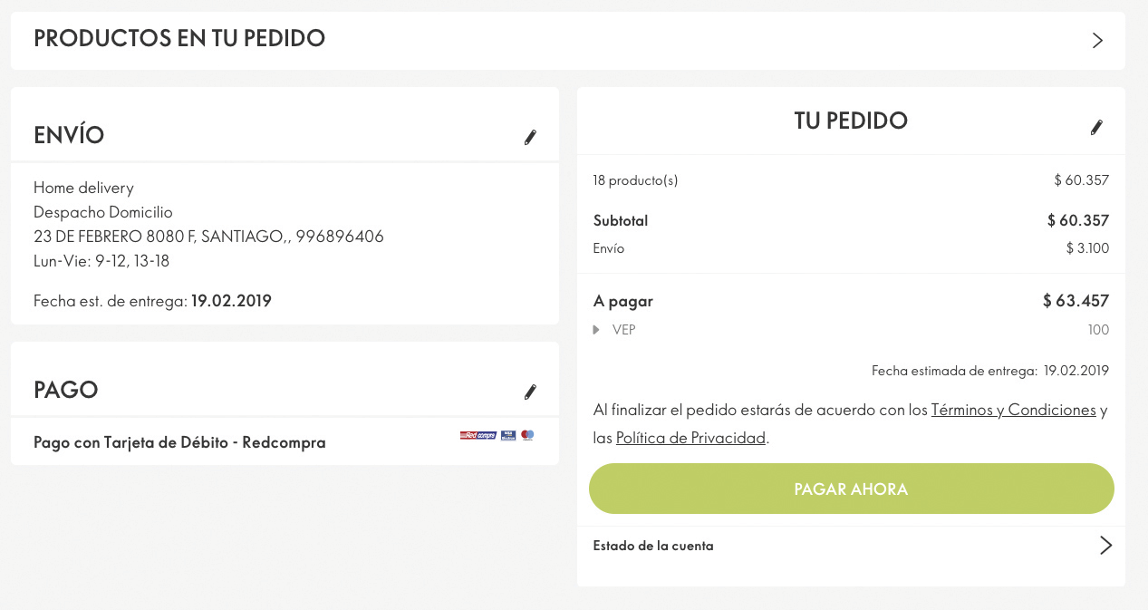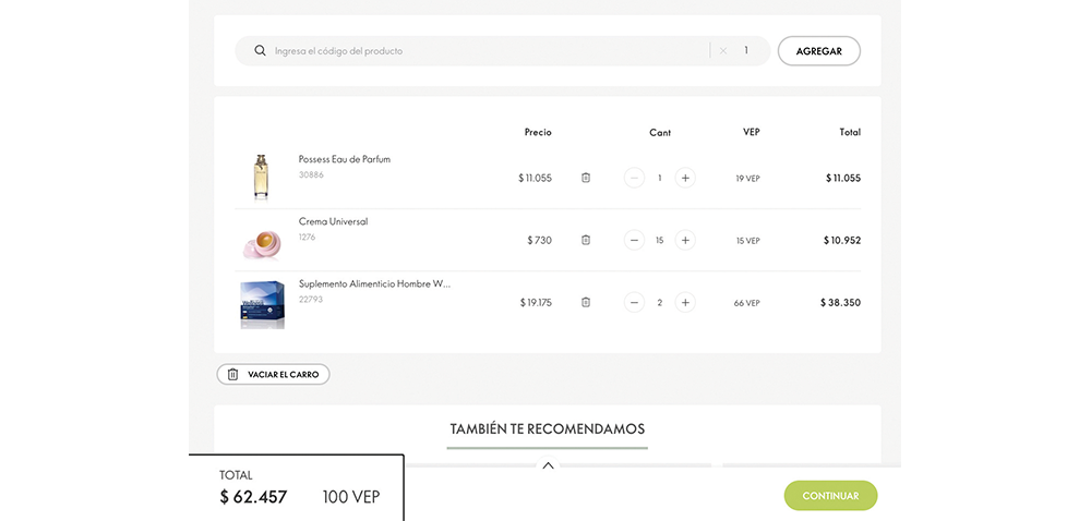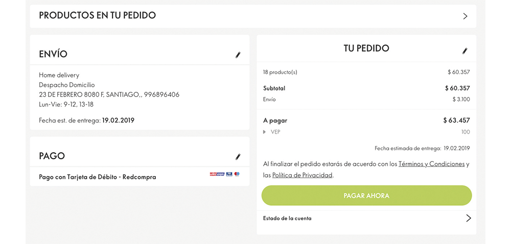 Aquí encontrarás el resumen de tu pedido: productos, dirección de envío, forma de pago, total a pagar, Valor en Puntos (VEP) y estado de tu cuenta.