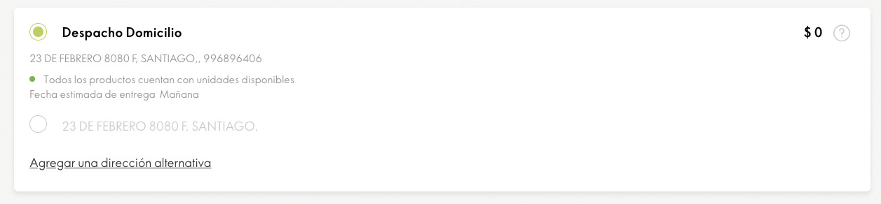 IMPORTANTE: Debes verificar que esté marcada la dirección correcta a la que desees recibir tu pedido.