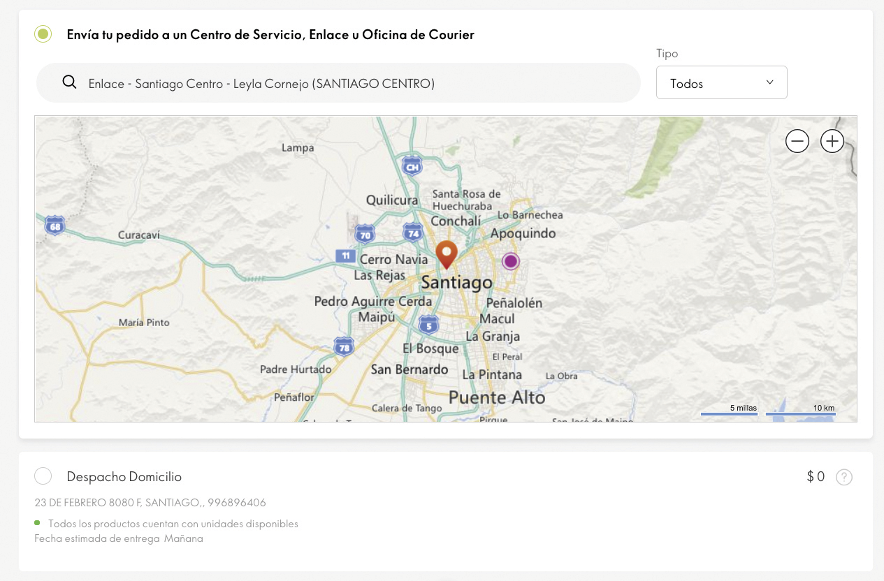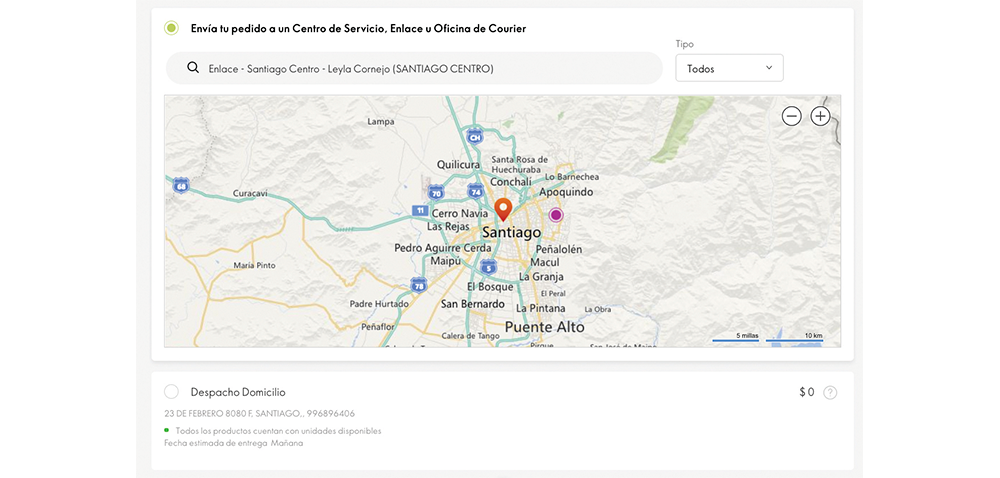 Podrás buscar tu punto de entrega y este será mostrado en el mapa.