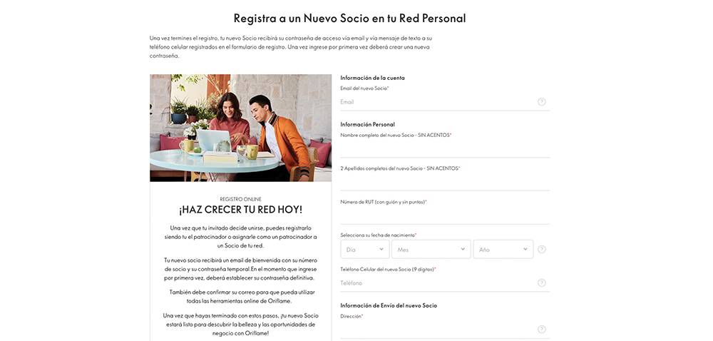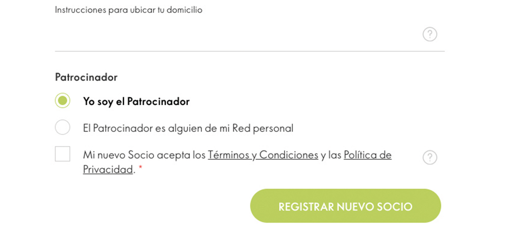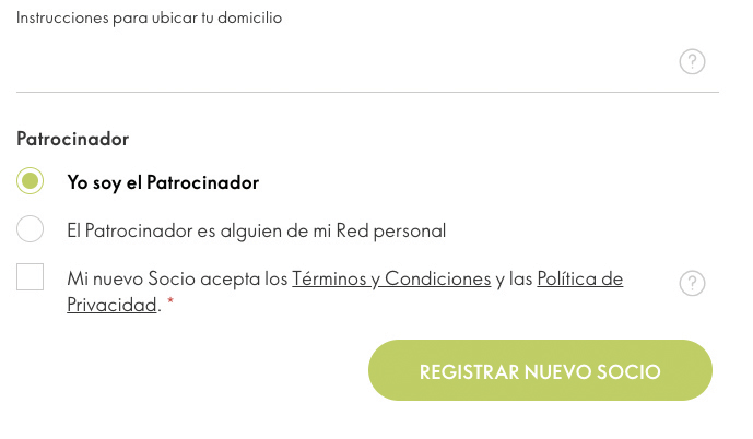 Registra a un nuevo Socio, siendo tu el patrocinador, o asígnalo a alguien de tu red personal.