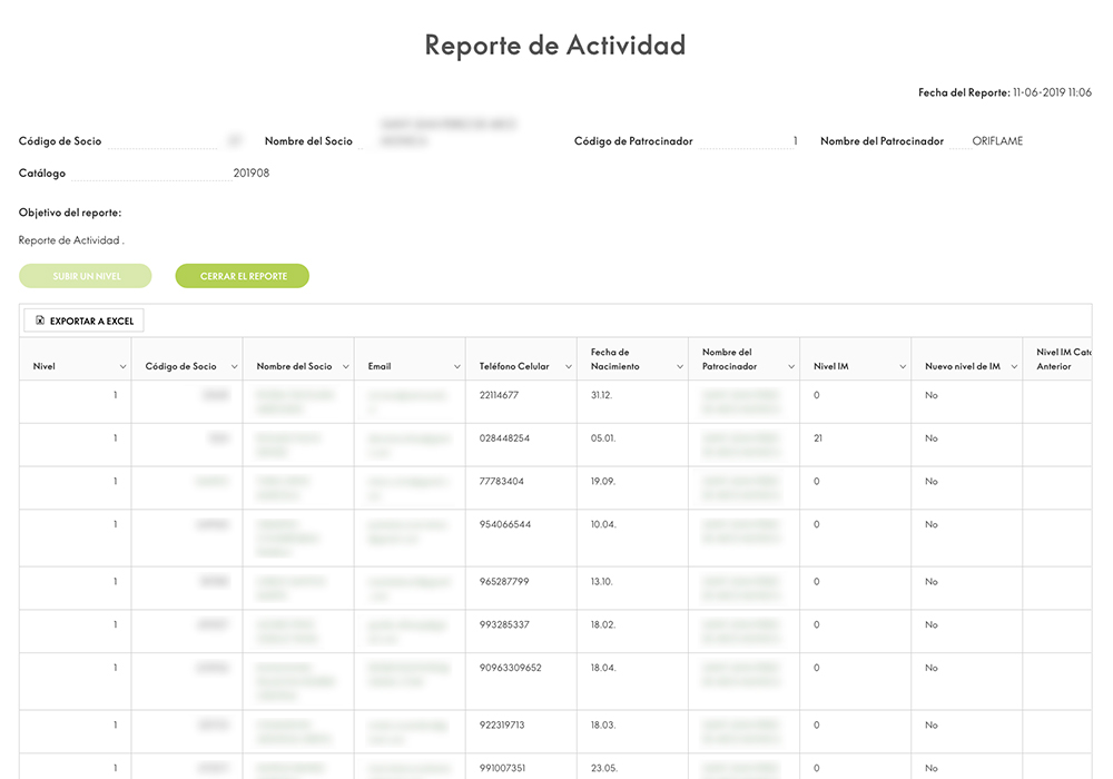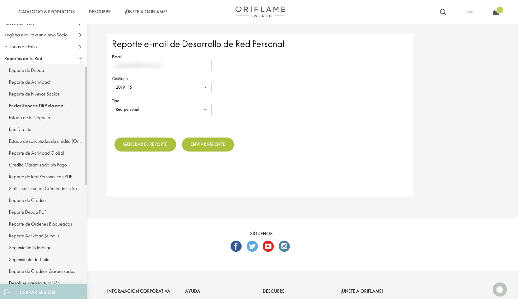 Envía por correo electrónico el reporte de desarrollo de tu red personal.